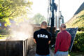 Vandaag beginnen de werkzaamheden! We komen met meerdere vrachtwagens voor het aanleggen van de bodemlus. We brengen de buren op de hoogte van de werkzaamheden met een informatiefolder. We plaatsen de boorstelling op de plek waar we gaan boren. Dit kan bijvoorbeeld naast of achter het huis zijn. Nadat we de bodemlus hebben aangebracht, vullen we de ruimte op met een betonkleimengsel. Dit mengsel heeft een paar dagen nodig om uit te harden, dus we komen over 2 tot 3 dagen terug voor de installatie van de bodemwarmtepomp.
